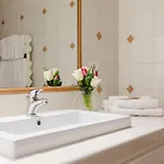 Relais Rasella 47 Apartamento consta de una zona de estar amueblada con un sofá que ofrece comodidades como una plancha y tabla de planchar, climatizador. El apartamento también dispone de TV de pantalla plana con canales vía satélite, además de comodidades esenciales de seguridad como detectores de humo. El cuarto de baño dispone de un bidé, ducha a ras de suelo y un inodoro separado de la ducha, así como secadores de pelo y toallas de baño.
